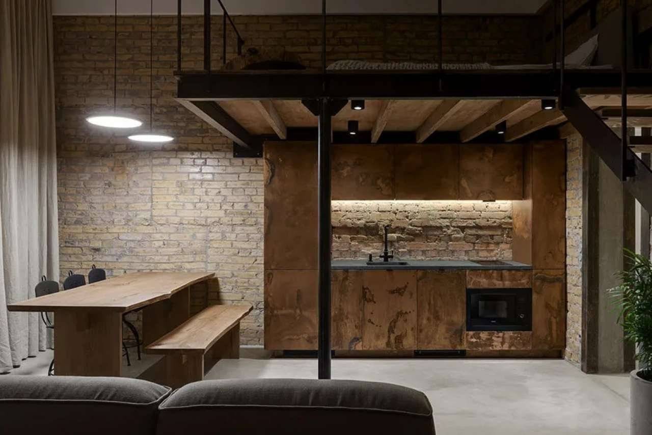 Così composto: open space con cucina a vista, camera da letto soppalcata, bagno.