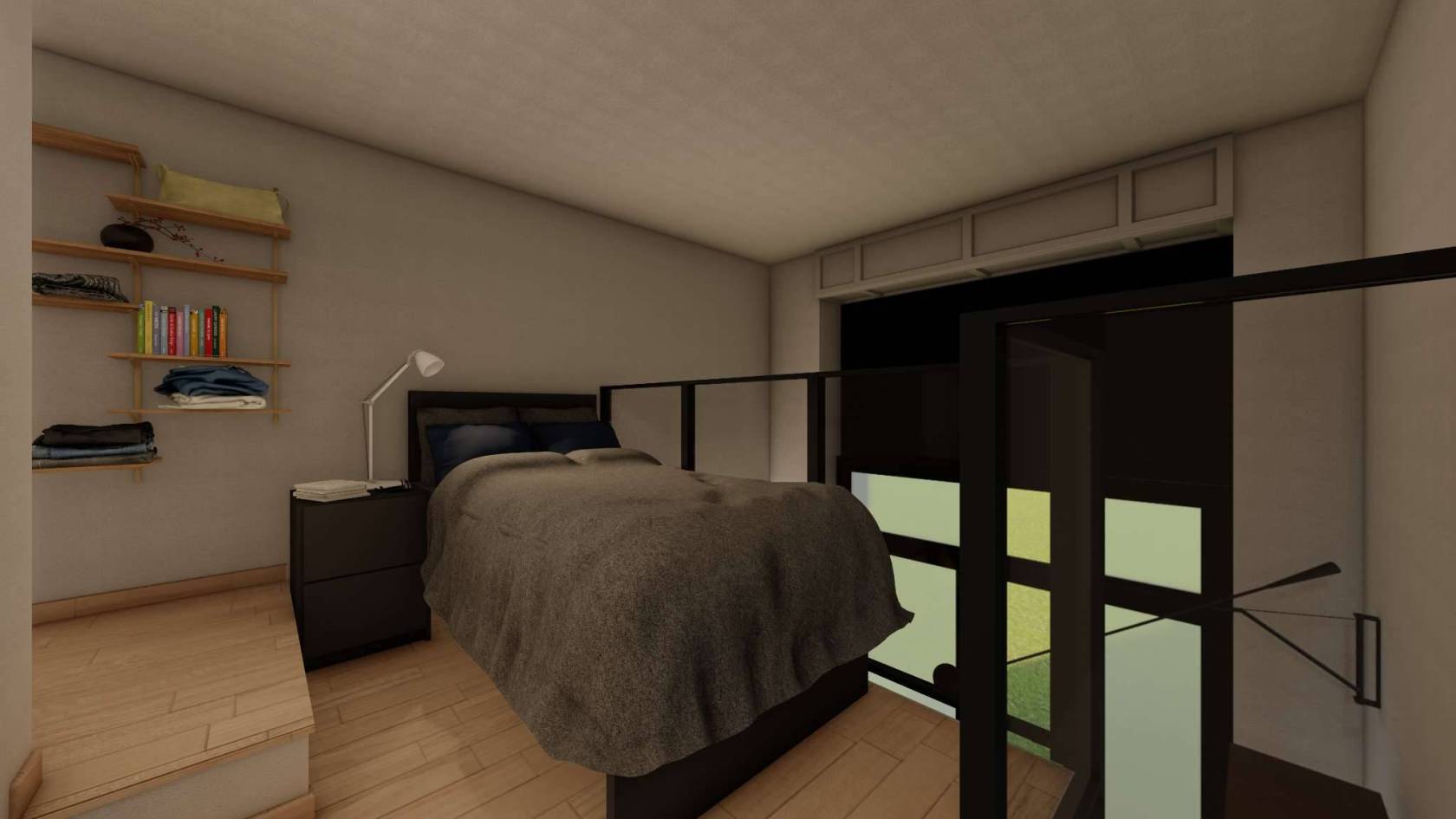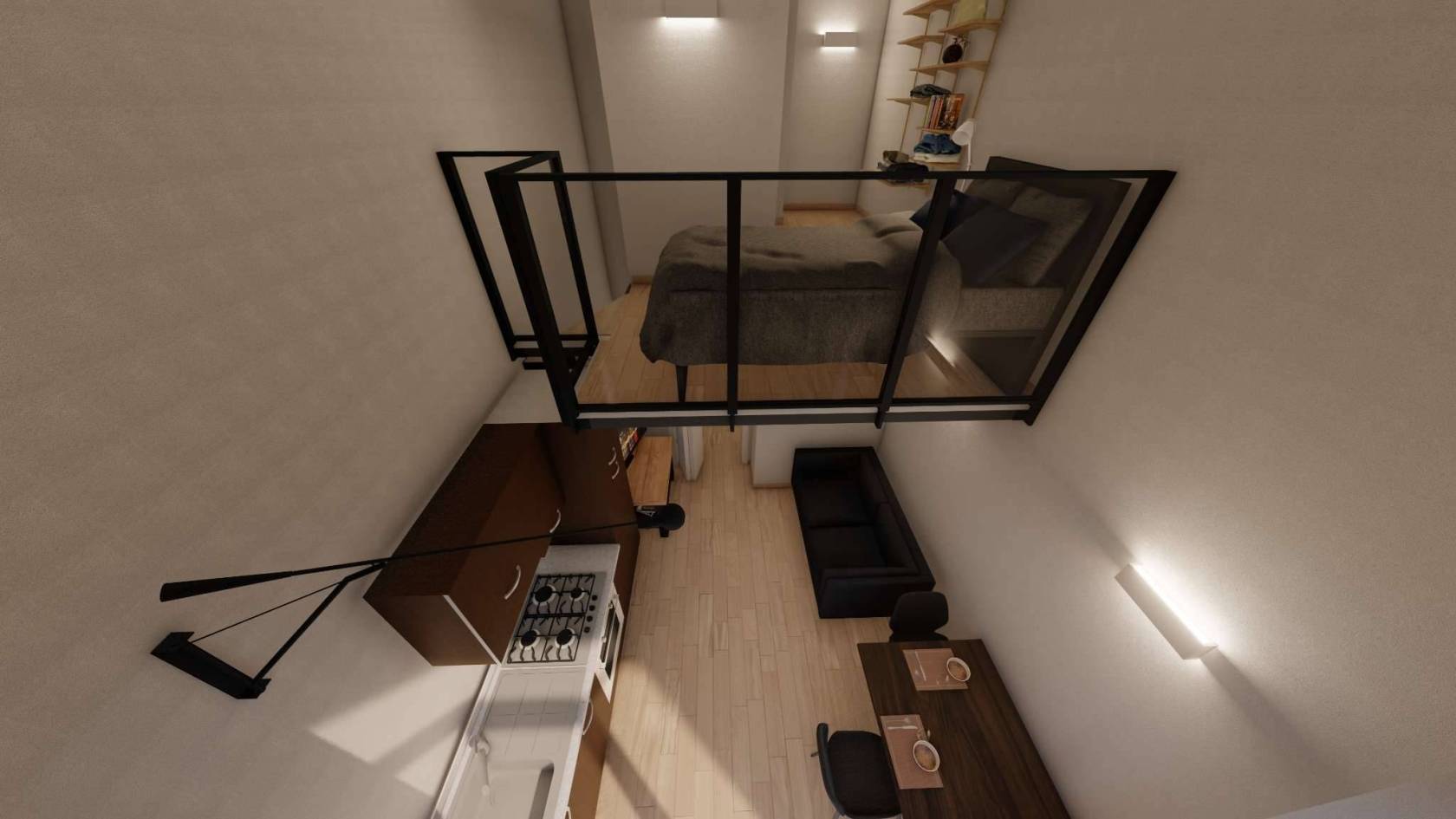 Così composto: soggiorno con angolo cottura, camera da letto soppalcata, bagno.