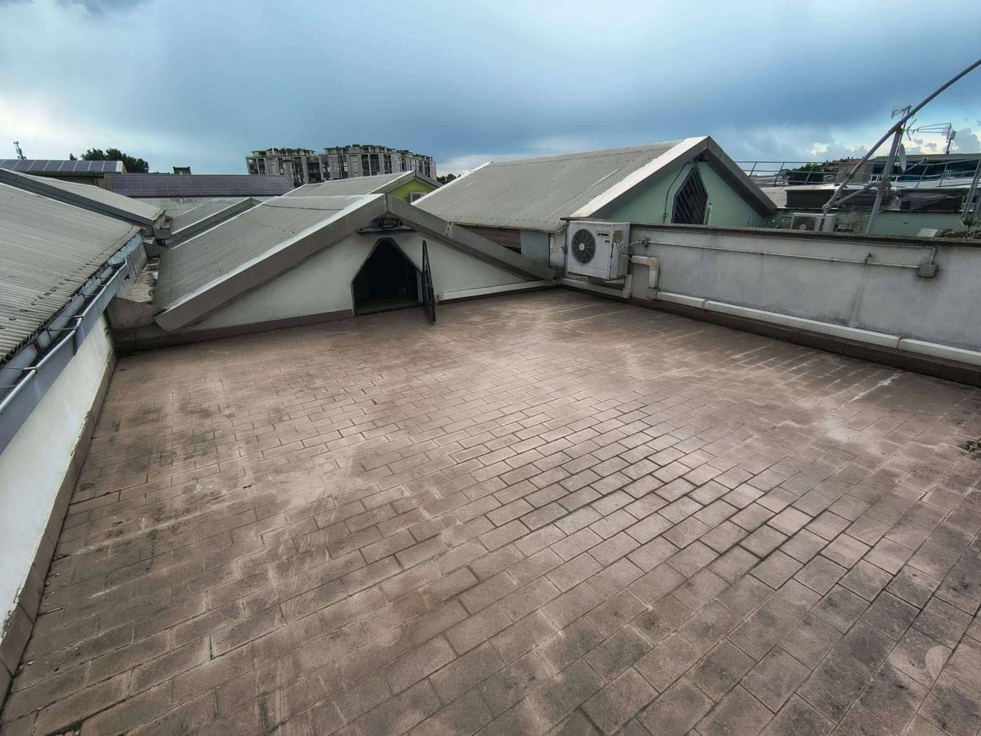 Così composto: grande open space con ampie vetrate, angolo cottura, bagno, scala in legno che porta a due ampi soppalchi collegati tra di loro, bagno, accesso con scala al terrazzo di circa 50 mq
