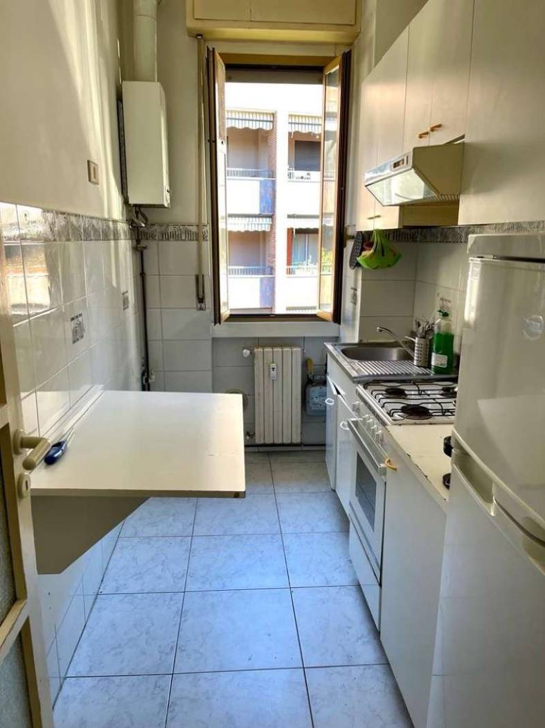 Situata all'interno di un appartamento di 65 mq, posta al terzo piano senza ascensore di uno stabile degli anni '50, appartamento composto da cucina abitabile, due camere, bagno, riscaldamento centralizzato.